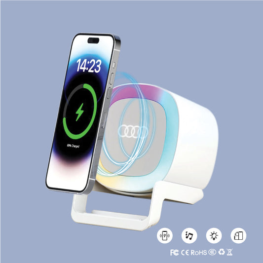5-in-1 Wireless Charger Table Speaker with RGB Light & Phone Holder – Premium Tech Corporate Gift