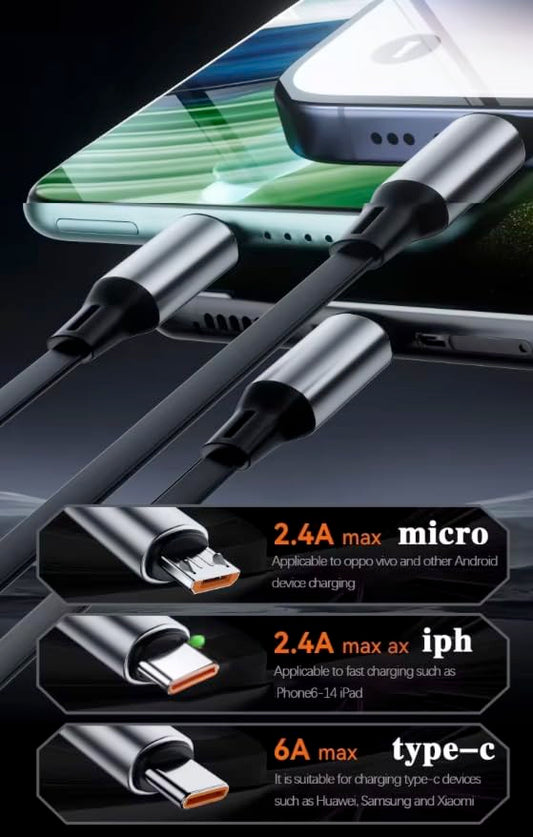 100W 3-in-1 Retractable Fast Charging Cable with Phone Holder – Type-C, Lightning & Micro USB